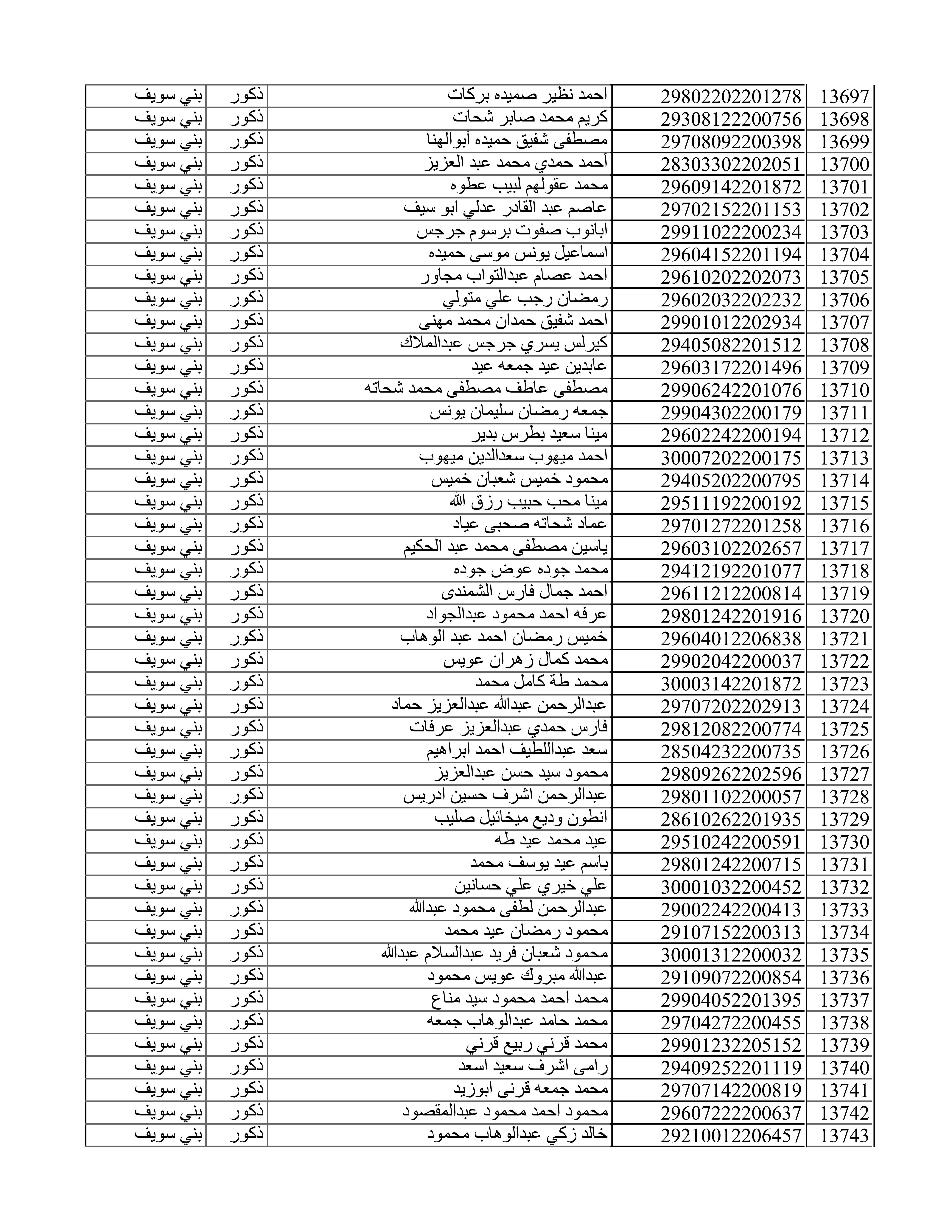 | كشوف نتيجة مسابقة الـ 30 الف معلم بمحافظة بني سويف |